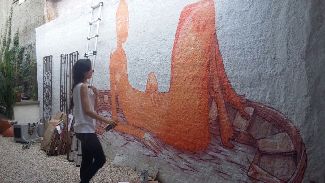 Mag: O momento que eu estou ali fazendo é muito foda. A gente não sabe o que vai acontecer. Eu tô de costas para o mundo. Tem que confiar. É uma entrega e você tem tanta liberdade. Você pode fazer sujeira e ninguém vai falar nada. É um momento muito mágico. Só quem está ali pintando entende. E também eu aprendi muito a criar sozinha porque eu pintava muito, no começo, com amigos e isso foi se desfazendo. E aí é outra brisa também porque você entra no seu mundinho.