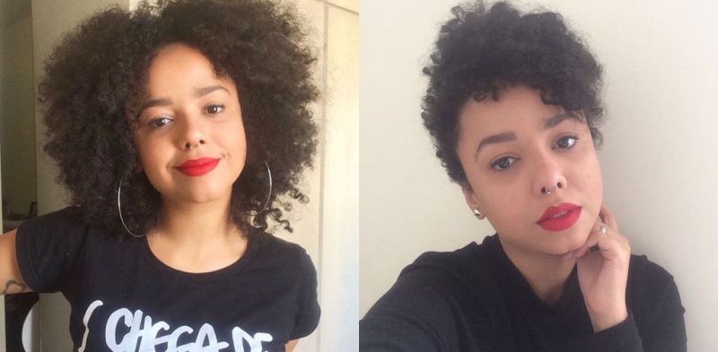 Então, percebi que o que me impedia de cortar o cabelo do jeito que eu queria não era o apego com meu black. Depois de 11 meses de transição e quase três anos de cabelo natural, eu já avancei na fase de descobertas e novidades com meu cabelo, que ficou preso ou alisado pelo racismo por boa parte da minha vida. Embora meu cabelo tenha sido, para mim, um símbolo de resistência em suas diversas formas – até trançado! – eu finalmente havia chegado em um momento da minha vida em que podia vê-lo como ele é: só cabelo. Cabelo que pode ser modificado e utilizado como eu bem quiser, para meu único agrado.