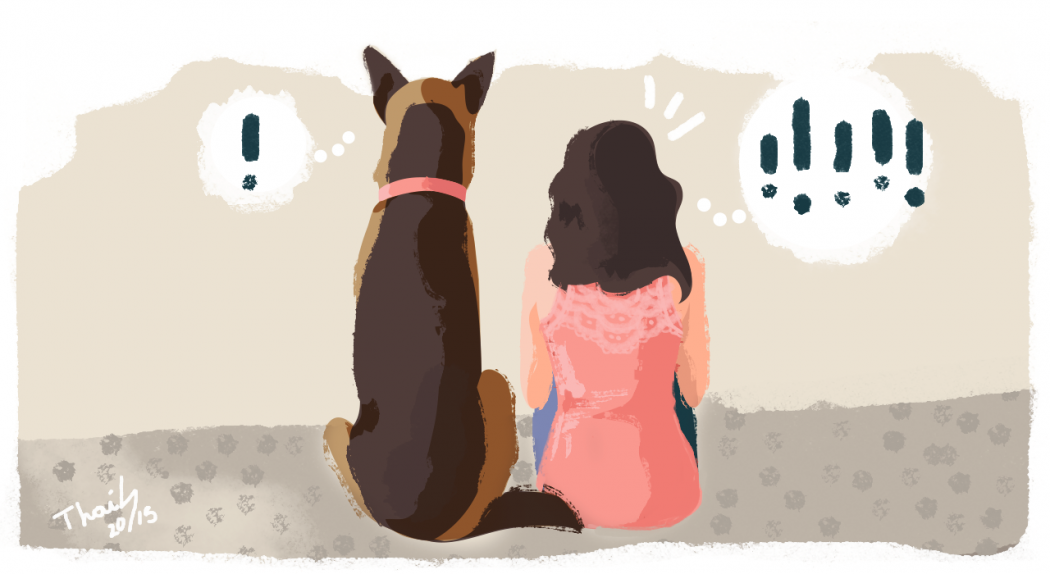 Lá está Valentina deitadinha perto da cerca, que nem uma esfinge, observando Heineken, o labrador do vizinho. E eu fico pensando “que capacidade contemplativa têm os animais!”. Ela pode ficar ali longos minutos só olhando, aparentemente muito serena e tranks. A questão é que, no fundo, esse exercício de contemplação da Vavá na verdade não está isento, nem de uma pitadinha que seja, de angústia. Ela está ali em estado de alerta, esperando o mais sutil movimento do Heineken (esse sim tranquilão) para começar a latir, correr de um lado para outro, chamar o FBI, cavar um túnel para ir lá dar na cara dele, como se ele fosse uma grande ameaça, sabe-se lá para quem.