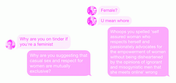 Todo mundo que já usou o app Tinder (ou a internet, ou, pra falar a verdade, todo mundo que já usou a VIDA) sabe que tem um monte de machista escroto se arrastando por ai, pronto para estragar todo e qualquer momento com discussões ridículas tentando te man-splain porque feminismo é irrelevante ou porque você é uma vadia odiadora de homens por acreditar que todxs temos direito a ter os mesmos direitos.